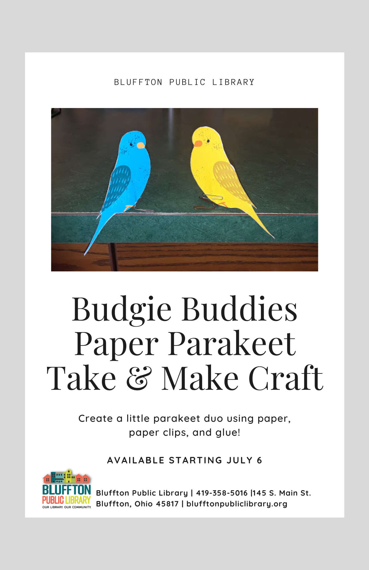 Budgie Buddies Take & Make Craft: Create a little paper parakeet duo using printed paper birds, paper clips and glue!