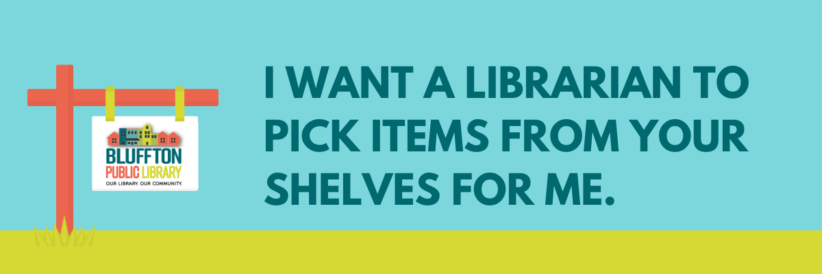 REQUEST THAT A LIBRARIAN PICK ITEMS FROM BLUFFTON PUBLIC LIBRARY'S SHELVES FOR YOU (Generic Hold Request)